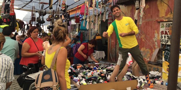 Türk lirasının Euro karşısında değer kaybetmesinin ardından Yunanlar alışveriş yapmak için Midilli Adası'nın karşısındaki Ayvalık Pazarı'na geliyorlar. Pınar Öğünç, 2018-10-15